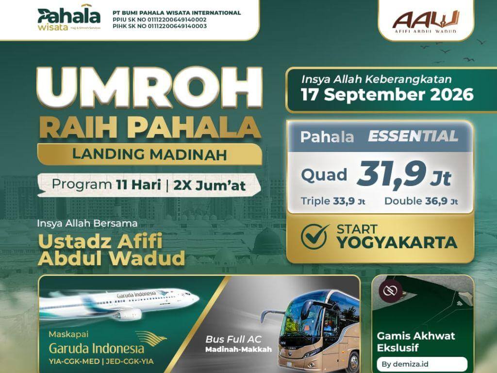 [ESSENTIAL] UMROH RAIH PAHALA 2X JUMAT LANDING MADINAH (START YOGYAKARTA)
